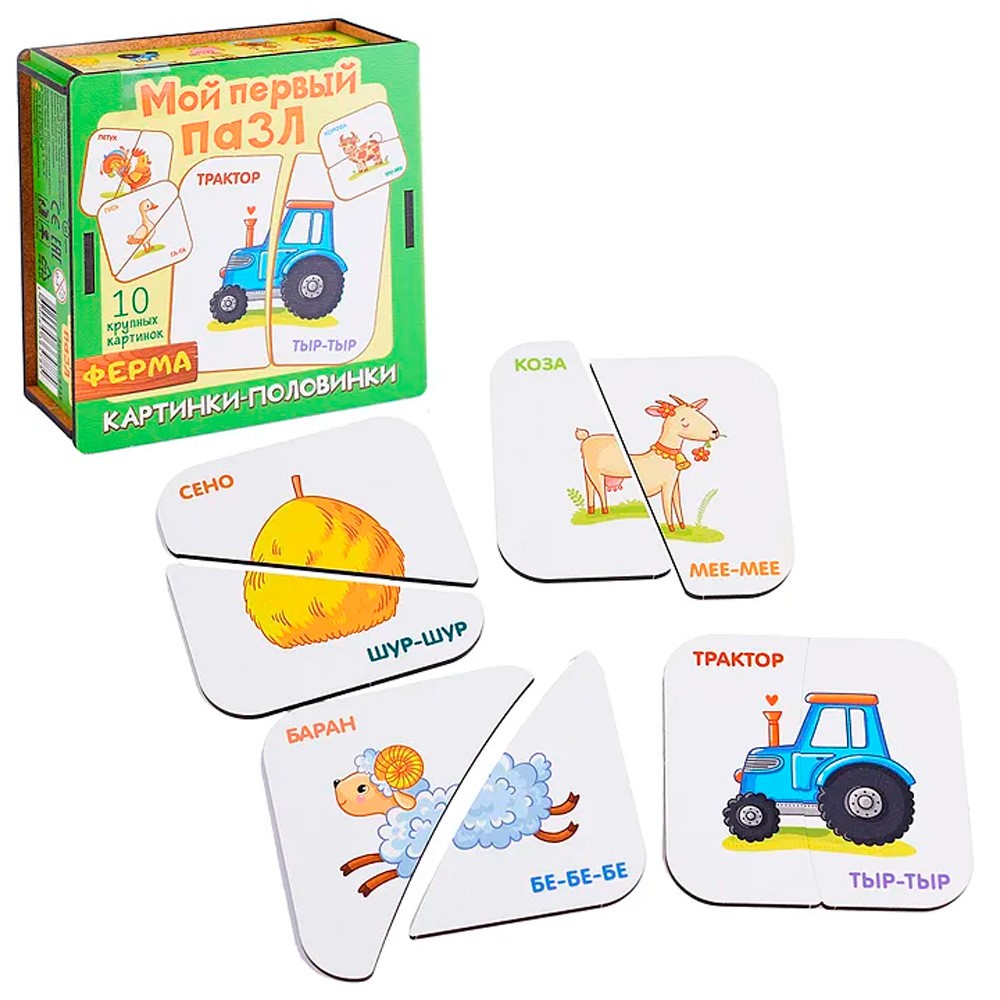Увлекательная игра «Мой первый пазл. Картинки-половинки. Ферма» от бренда «Нескучные игры» поможет детям весело и с пользой, подбирая половинки изображений друг к другу.