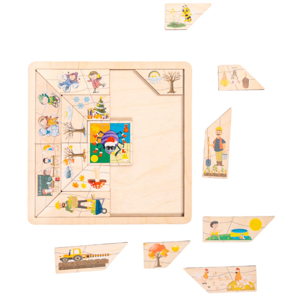Деревянные пазлы "Паучок" Времена года - одно из самых интересных и полезных занятий для малыша в первые годы его жизни.