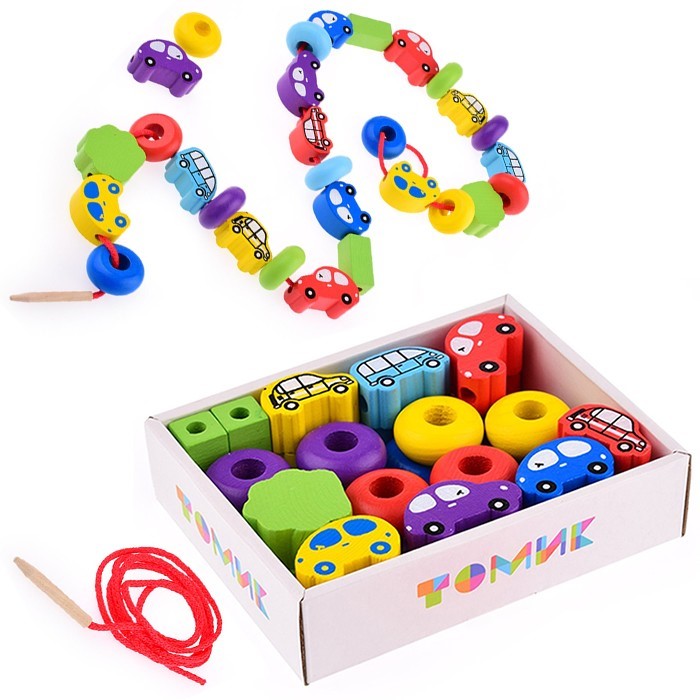 • Как играть: нанизывать бусины на шнурок. Можно составлятьлогические цепочки.