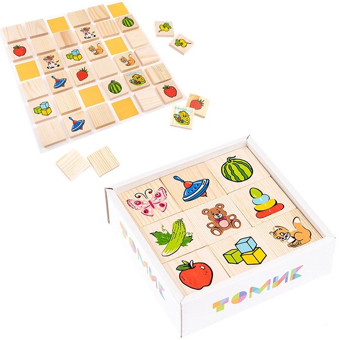 Деревянный Счетный материал "Мемори" "Найди Пару" 36 деталей 1-74