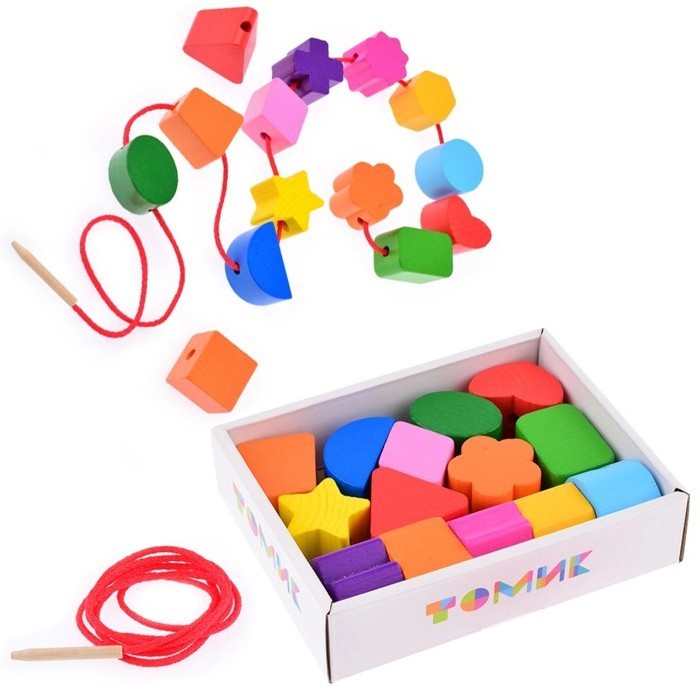 • Как играть: нанизывать бусины на шнурок. Можно составлятьлогические цепочки.