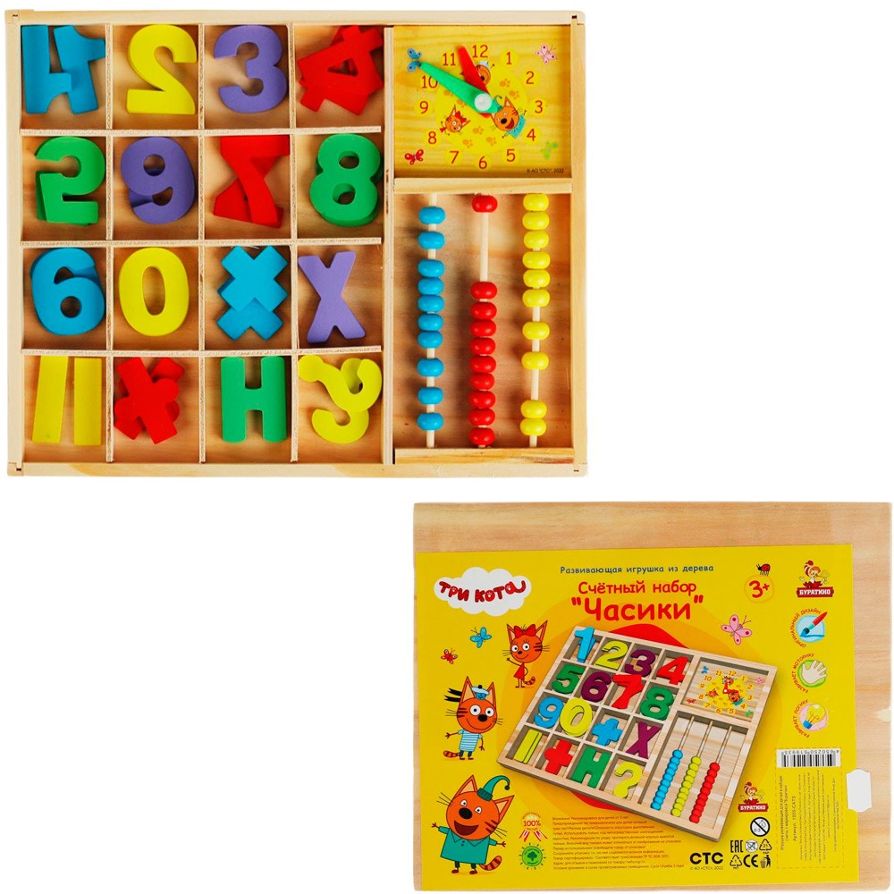 Деревянный Счетный материал Три Кота с часами 1055-CATS /120/