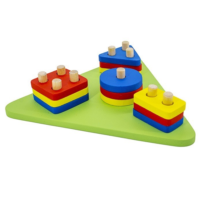 Деревянный сортер - отличная развивающая игрушка для малышей. В комплект входит основа, а также 12 разноцветных деталей, 4 разных форм, которые нанизываются на основу. Среди элементов сортера - треугольник, круг, квадрат и крестик, все соразмерны детской руке. Играя, малыш будет тренировать навыки мелкой моторики, координацию, логическое мышление, знакомиться с геометрическими формами, цветами, а также учиться навыкам простого счета. Все элементы сортера изготовлены из экологически чистого материала - дерева, хорошо отшлифованы и покрыты безопасными красками на водной основе. Цветовые решения представлены в ассортименте.