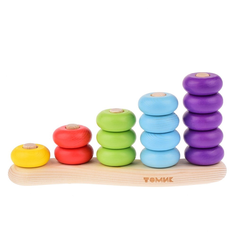 Деревянная игра сочетает в себе несколько вариантов: сортёр, обучение цветам, формам, счету.
