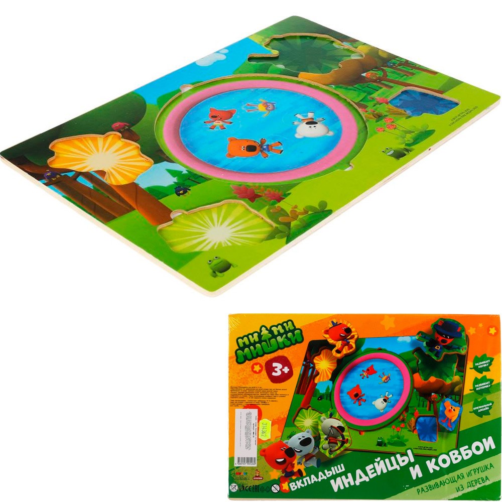 Деревянный Вкладыш индейцы и ковбои Ми-ми-мишки Буратино MMM-39