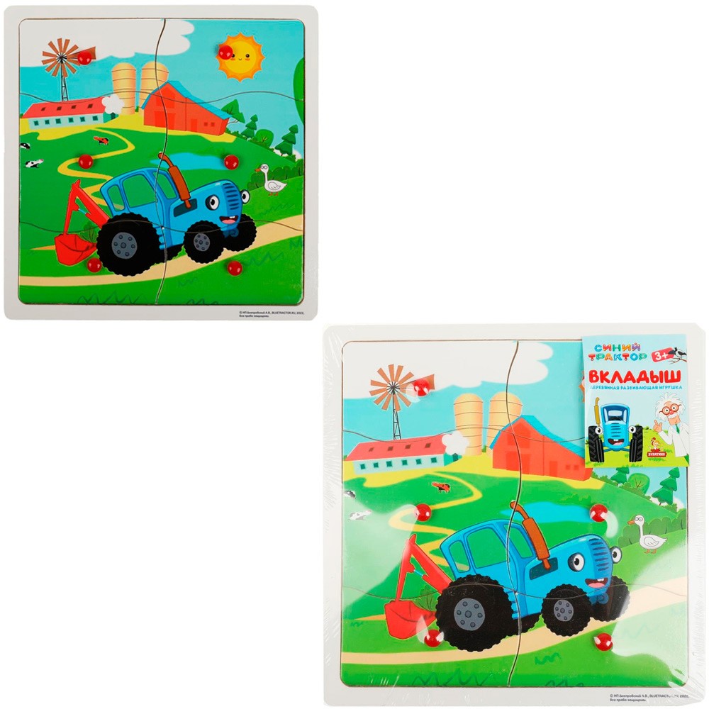 Деревянный Вкладыши с ручками Синий трактор 20*20 см STR13