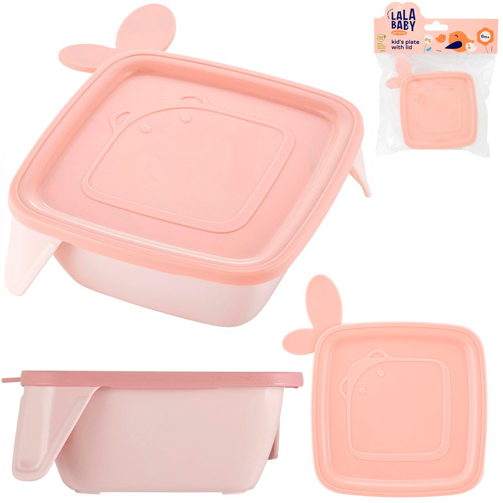 Детская тарелка Lalababy Play with Me Wolfie с мягкой крышкой персиковая карамель LA134312040