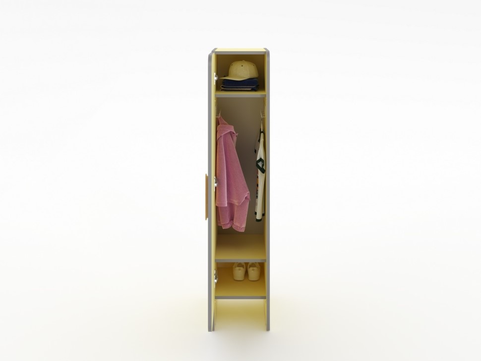 Шкафчик разработан с учетом потребностей маленьких пользователей и условий их повседневной жизни, обеспечивая практичность, комфорт и безопасность. Продукция соответствует требованиям СанПиН и нормам пожарной безопасности.