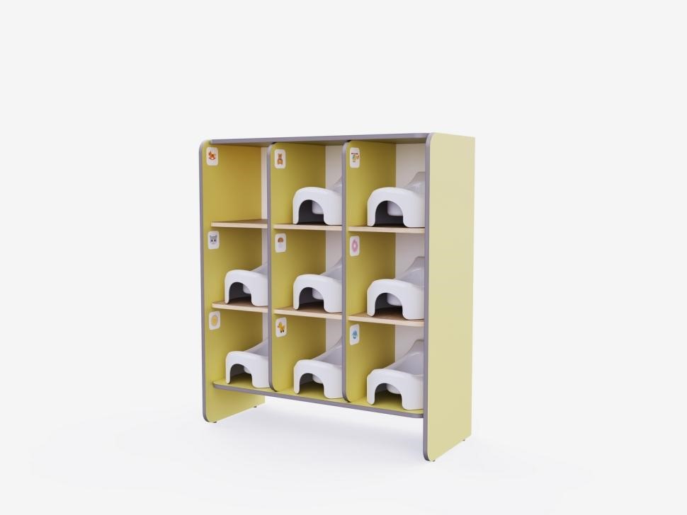 Это функциональное решение для организации пространства в группах детского сада. Стеллаж поможет поддерживать порядок и чистоту. Комплектация: Стеллаж под горшки. Комплект наклеек для индивидуализации каждой секции, что не только украсит стеллаж, но и пом