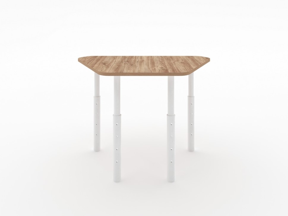 Детский растущий стол изготовлен в форме трапеции. Необычный дизайн столешницы позволяет эффективно задействовать имеющиеся пространства в ДОУ. Парты легко собираются в круг, линию или змейку, давая детям возможность развивать навыки общения и командной р