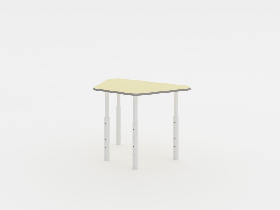 Детский растущий стол изготовлен в форме трапеции. Необычный дизайн столешницы позволяет эффективно задействовать имеющиеся пространства в ДОУ. Парты легко собираются в круг, линию или змейку, давая детям возможность развивать навыки общения и командной р