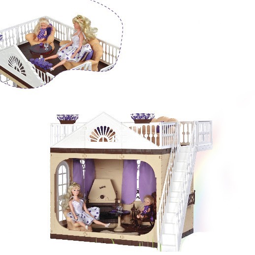 Маленький кукольный домик с белой парадной лестницей - отличная идея для подарка маленькой принцессе.