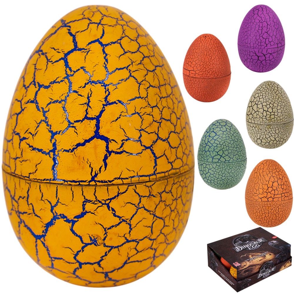 Цветное яйцо содержит игрушку-динозаврика.