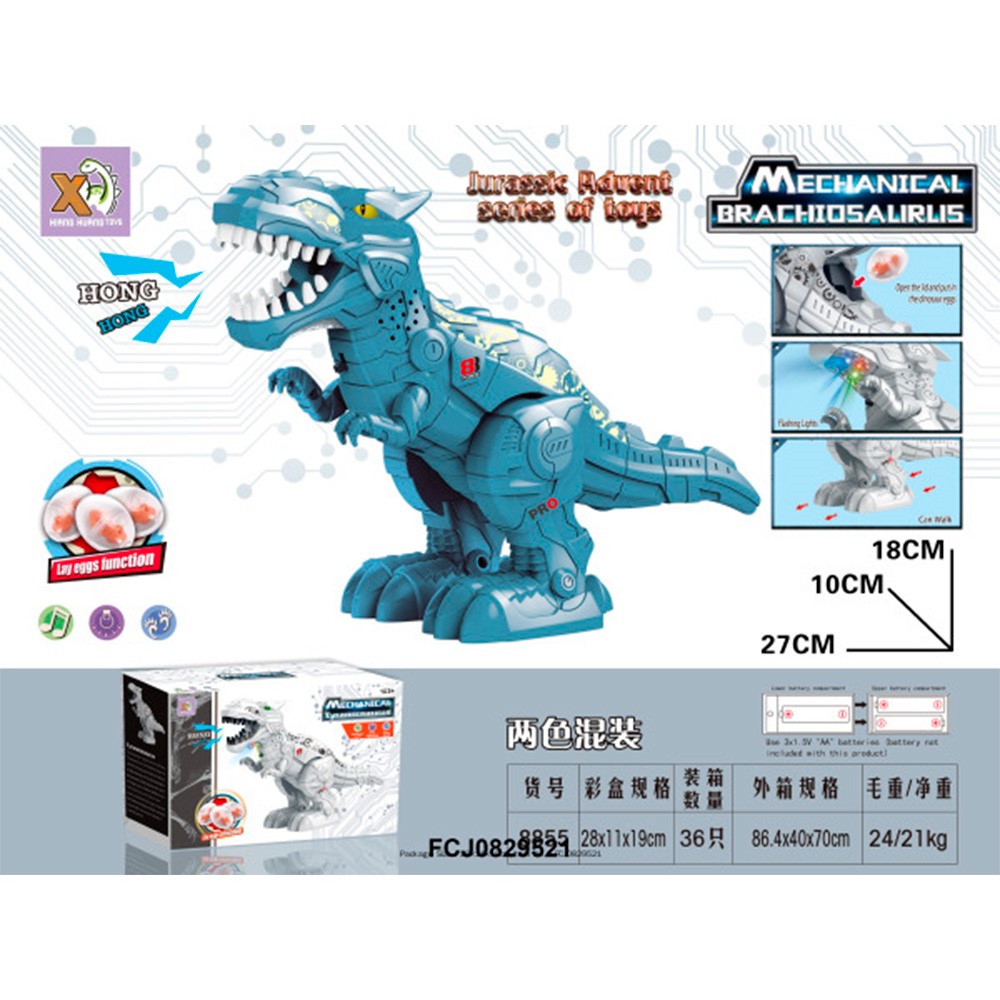 У динозавра подвижные лапы, ходит, рычит, подсветка. Откладывает яйца.