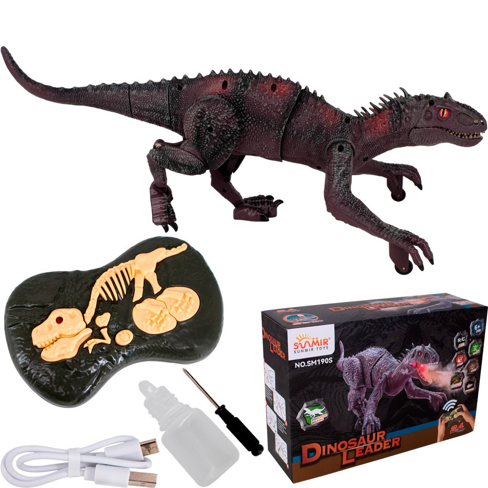 Комплектация: динозавр - 1 шт, пульт управления -1 шт, аккумулятор - 1 шт, зарядное устройство - 1 шт, бутылочка