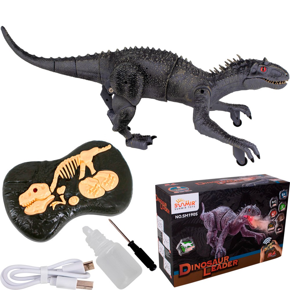 Комплектация: динозавр - 1 шт, пульт управления -1 шт, аккумулятор - 1 шт, зарядное устройство - 1 шт, бутылочка