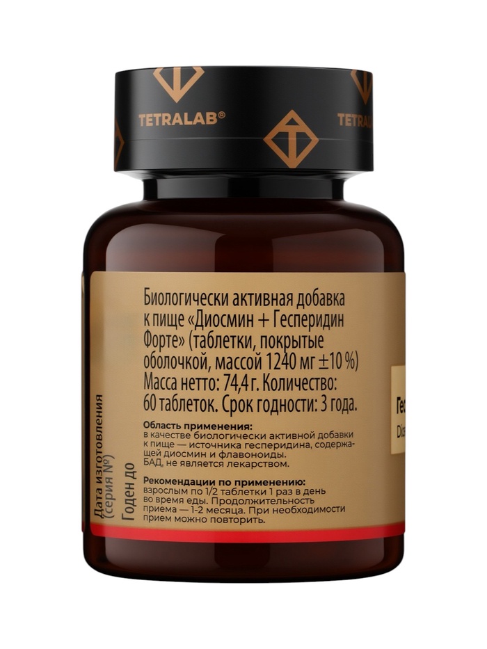 Диосмин + Гесперидин Форте Венотоник TETRALAB — надёжное средство для укрепления сосудов, улучшения венозного кровотока и профилактики варикозных проявлений. Подходит для регулярного применения, способствует снижению отёков, усталости и поддерживает лёгкость в ногах в течение всего дня.