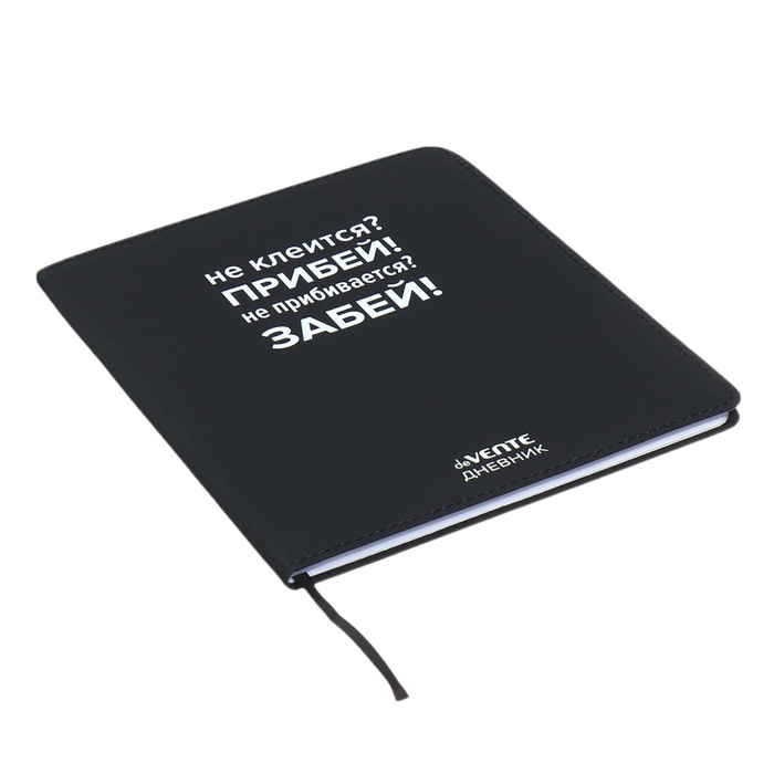 Дневник "deVENTE. Не клеится? Прибей!" универсальный блок, 48 листов, белая бумага 80 г/м², печать в 1 краску, гибкая обложка из искусственной кожи, шелкография, отстрочка, 1 ляссе