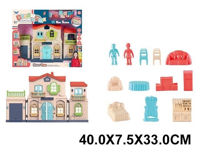 Комплектация: дом - 1 шт, фигурки - 2 шт, кухня - 1 шт, зеркало - 1 шт, кровать - 1 шт, холодильник - 1 шт, телевизор - 1 шт, стол - 1 шт, кресло - 1 шт, диван - 1 шт, стул - 2 шт
