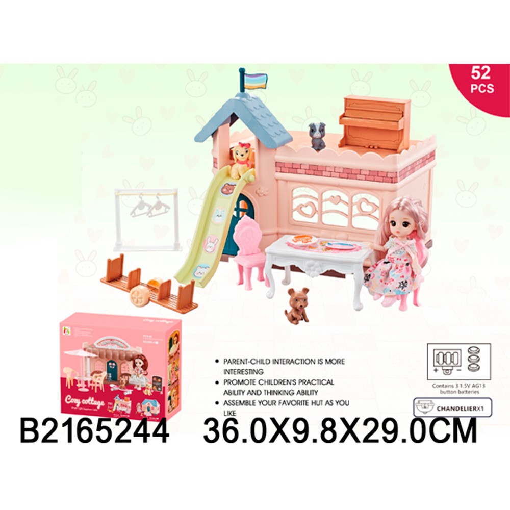Комплектация: куколка, детали для сборки дома, мебель, аксессуары