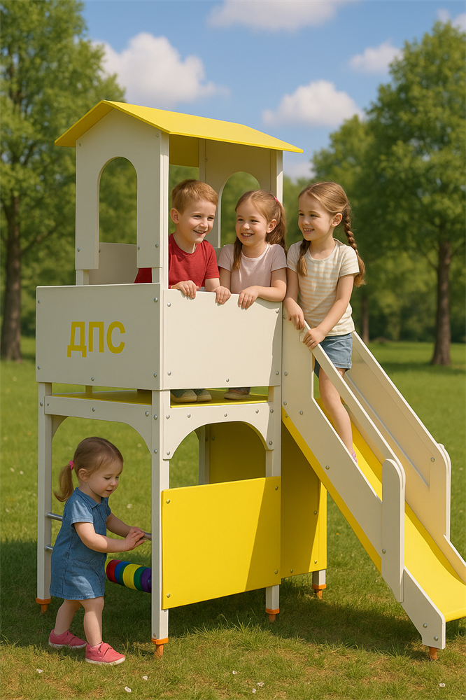 Многоуровневая игровая зона – двухэтажная конструкция со смотровой площадкой расширяет игровое пространство и развивает физическую активность детей. Обучение через игру#nbsp;– тематическое оформление в стиле ДПС знакомит детей с правилами дорожного движения в увлекательной форме. Развитие когнитивных навыков#nbsp;– счеты на нижнем этаже стимулируют логическое мышление и помогают освоить простейшие математические действия. Безопасность и комфорт#nbsp;– прочные лестницы с противоскользящим покрытием, удобные лавочки на обоих уровнях и надежные ограждения обеспечивают безопасность игры. Социализация и ролевые игры#nbsp;– просторная конструкция способствует взаимодействию между детьми, развивая коммуникативные навыки и воображение. Нужно изменить дизайн? Мы готовы! Обратитесь к Вашему менеджеру на индивидуальную разработку
