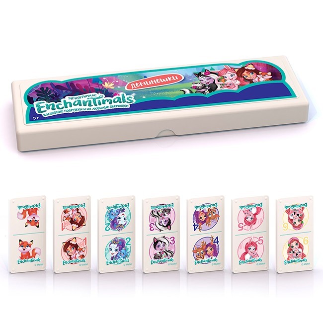 Домино - это веселая настольная игра для дружной компании. Игра состоит из пластмассовых карточек. На лицевую сторону нанесено изображение героев мультфильма и цифры от 0 до 6. Играя в домино, ребенок познакомится с цифрами, будет тренировать логику и мышление. Изображения красочно и качественно напечатаны. Каждый игрок должен добавить в цепочку из фишек одну их своих фишек так, чтобы изображение на ней подошло к изображению на конце цепи. Если в руках у игрока нет подходящей фишки, он берет дополнительные до тех пор, пока не попадется нужная. Выигрывает тот, кто первым выложит все свои фишки.