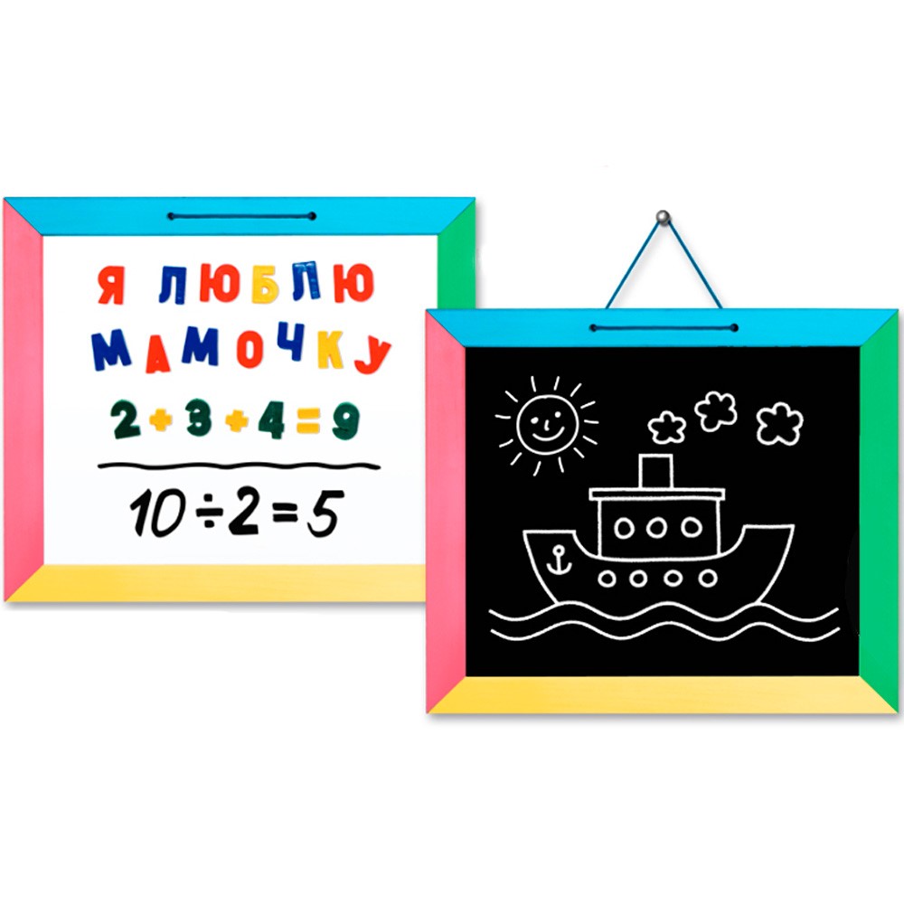 Комплектность: рамка большая цветная, маркер, мел, салфетка