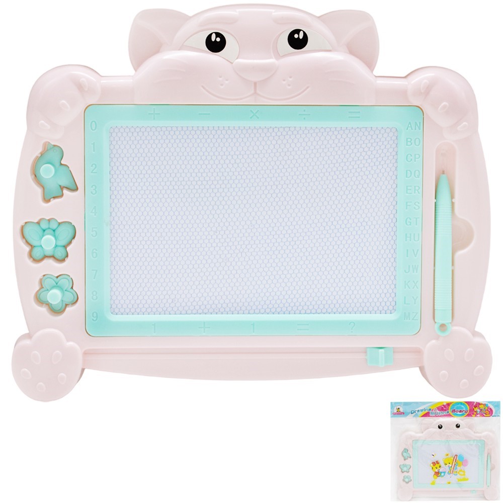Магнитная доска для рисования – прекрасный вариант подарка для маленьких художников. Рисовать на ней очень просто и интересно. Ребёнок с большим интересом будет создавать различные картинки, украшать их с помощью печати, а потом одним движением стирать. Изготовлено изделие из качественного, экологически чистого пластика.