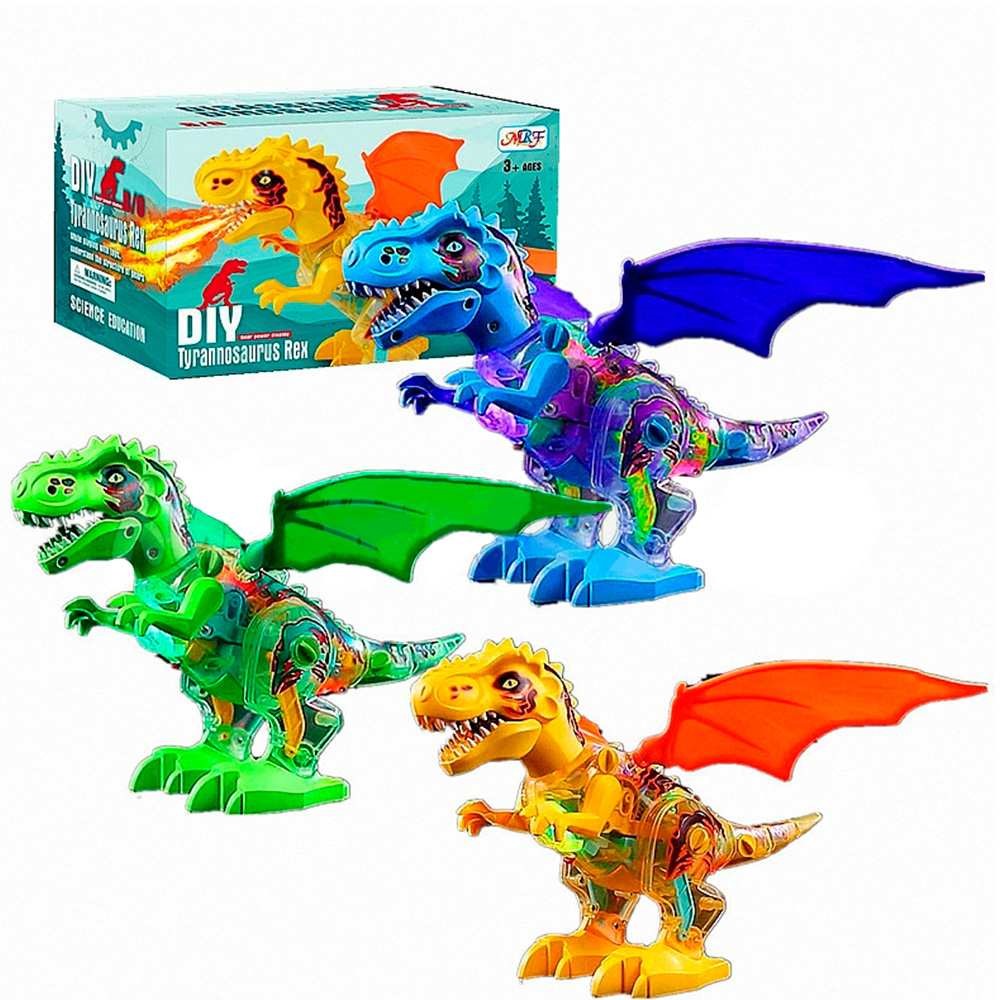 У дракона подвижные лапы, ходит, рычит, мигают цветные огоньки. Корпус прозрачный, видно, как при движении внутри крутятся цветные шестеренки.
