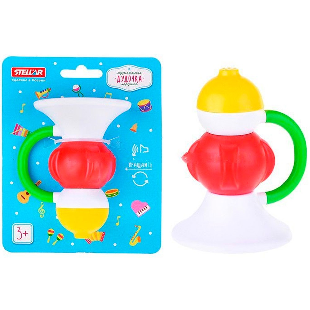 Музыкальная игрушка «Дудочка» подойдет для самых юных музыкантов. Она способна издавать разные звуки, развивая слух ребенка. В игрушке совмещены характеристики духовых и шумовых музыкальных инструментов. Она будет звучать, когда ребенок просто дунет в неё, а еще затрещит, если вращать за центральную деталь. Внутри дудочки находятся маленькие шарики, которые во время встряхивания издают «пересыпающийся» звук. Малышу обязательно понравится крутить разноцветную центральную деталь дудочки, держась за ручку, которая очень удобна для ребенка.