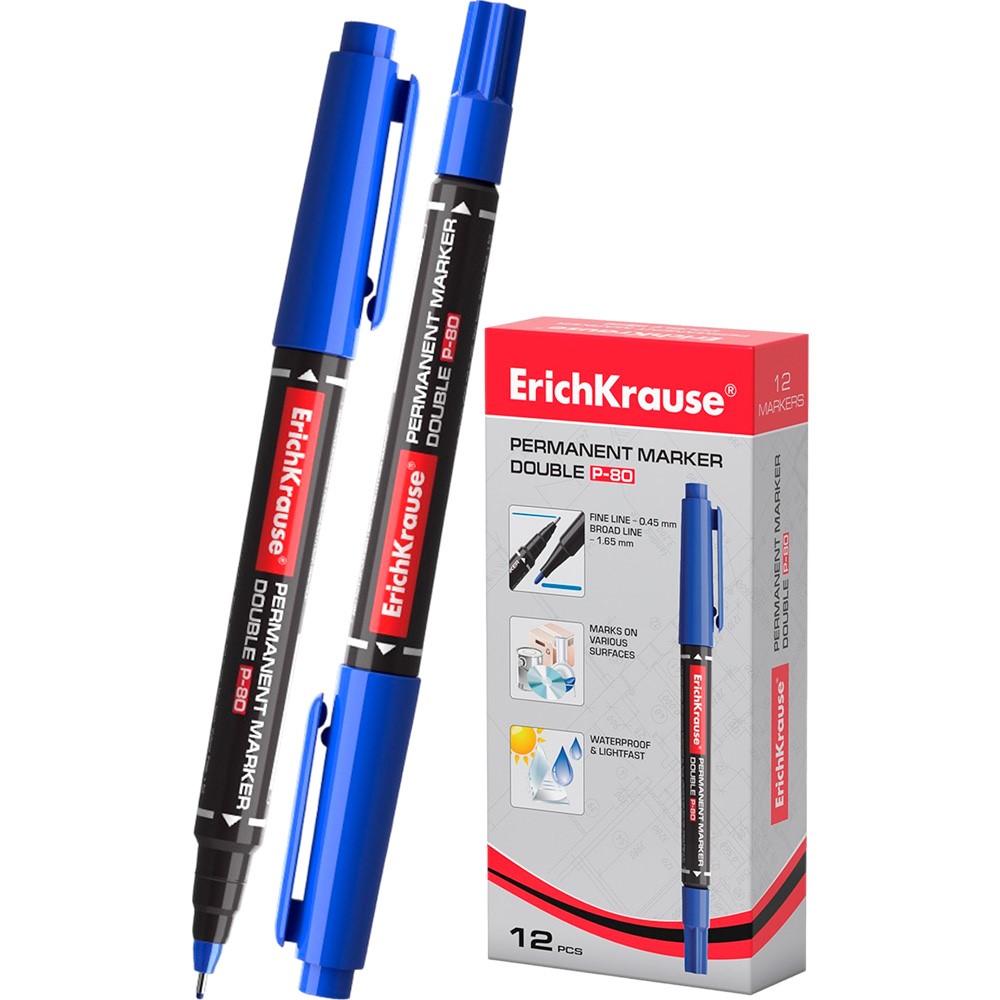 Маркер синий двухсторонний перманентный ErichKrause Double P-80 48184