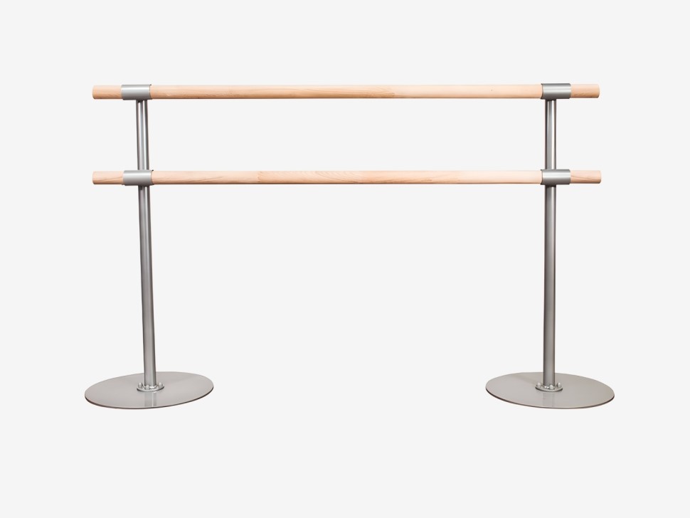 Высота нижнего поручня от пола составляет 75 см, высота верхнего поручня от пола составляет 110 см. Длина поручня — 2 метра. Это делает мобильный балетный станок универсальным как для начинающих, так и для профессионалов.