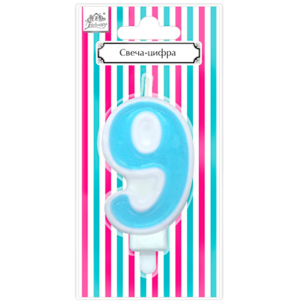 Свеча для торта Цифра "9" Веселая вечеринка голубой L0289-BL