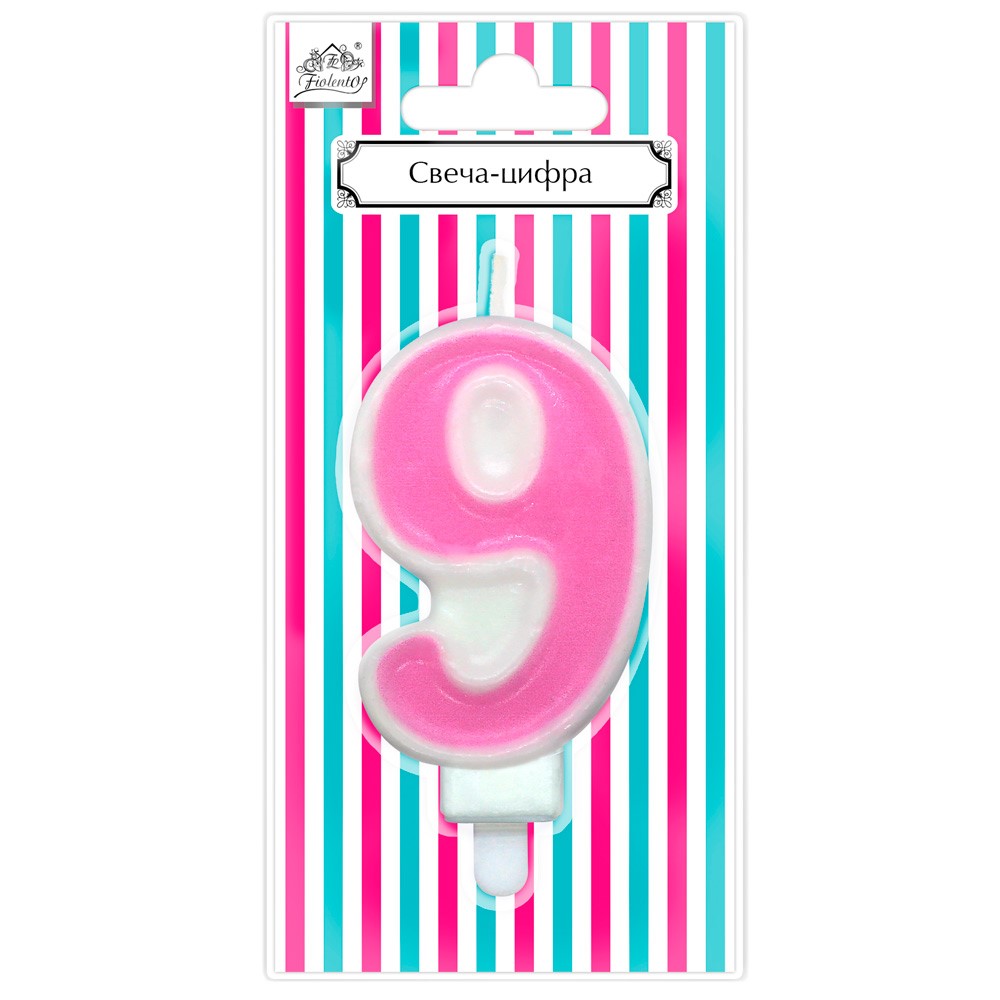 Свеча для торта Цифра "9" Веселая вечеринка розовый L0289-P
