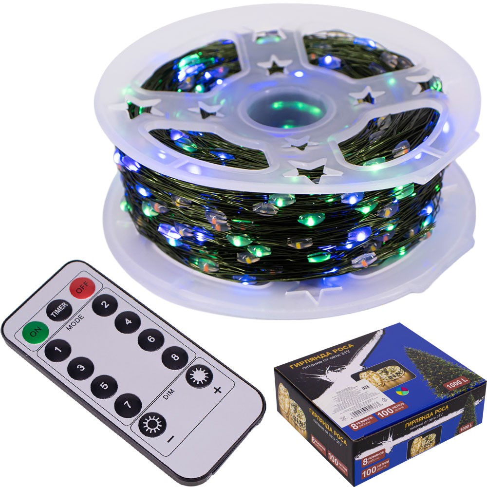 Электрическая гирлянда 100м 1000 ламп FG240519071Q 8реж. Для улицы, с пультом