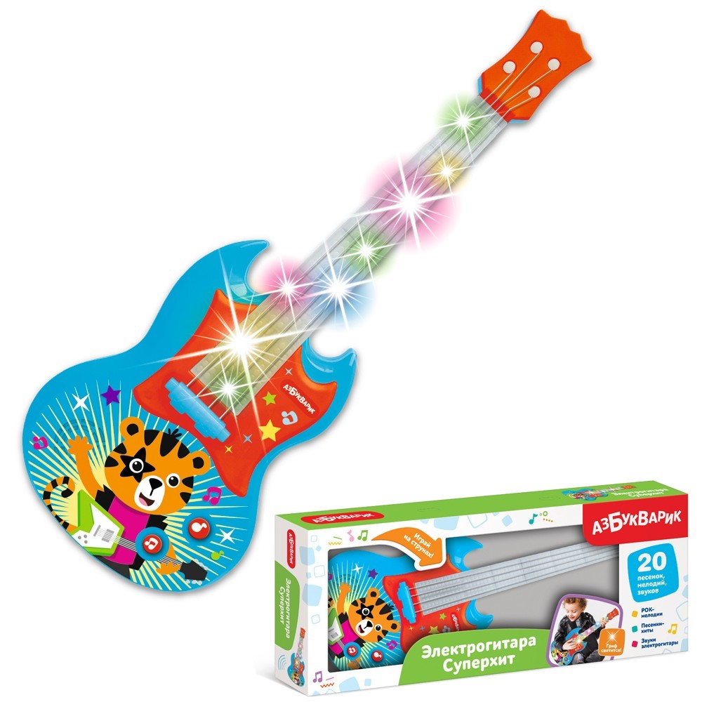 Крутая музыкальная детская игрушка в виде электрогитары от ТМ «Азбукварик» впечатлит малышей.