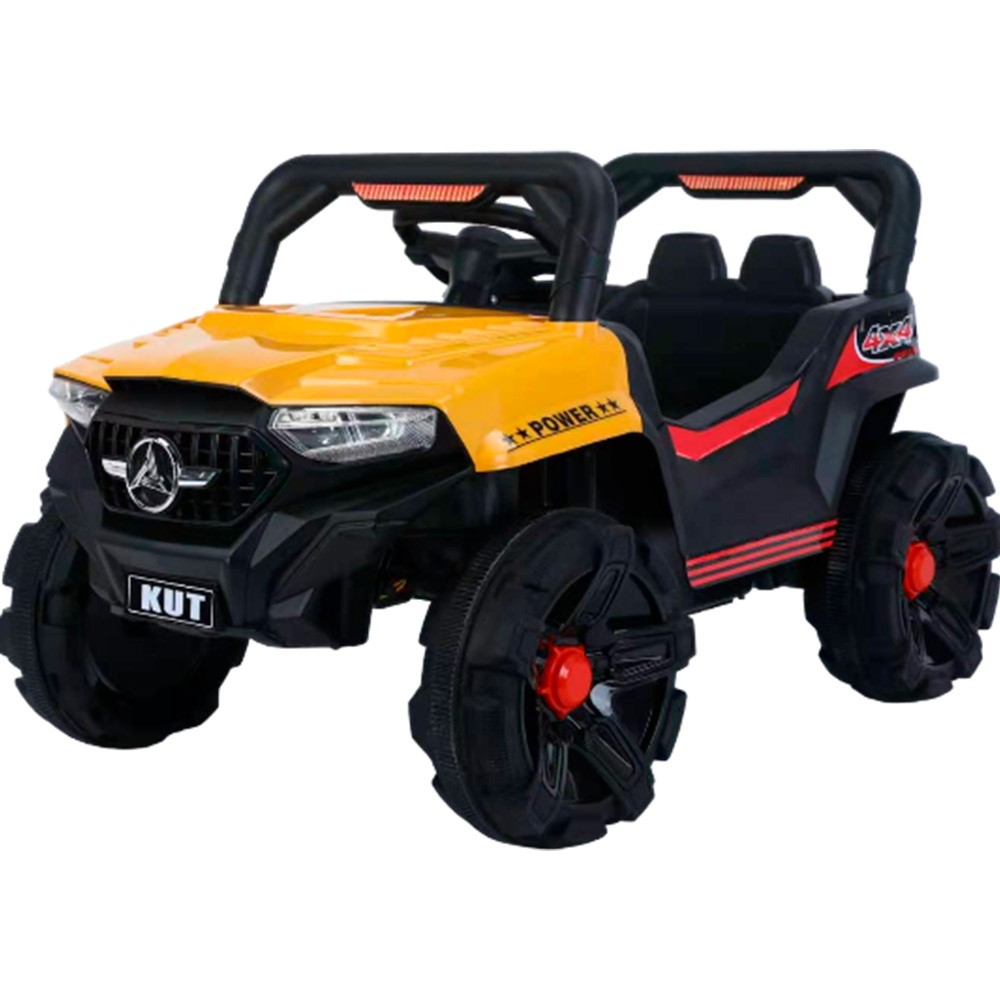 Электромобиль выполнен в виде джипа с открытым кузовом.