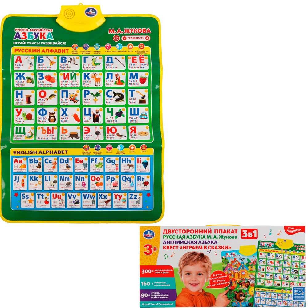 Электронный плакат Двусторонний ЖУКОВА М.А. 3в1.рус.,англ.азбуки.300 слогов Умка HX0251-R79