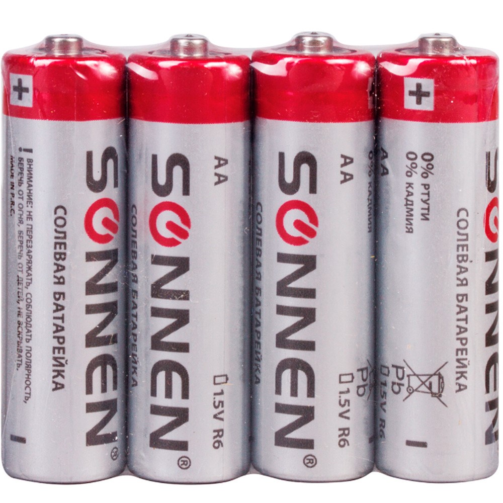 Элемент питания SONNEN, АА (R6, 15А), солевые, пальчиковые 4 шт 451097