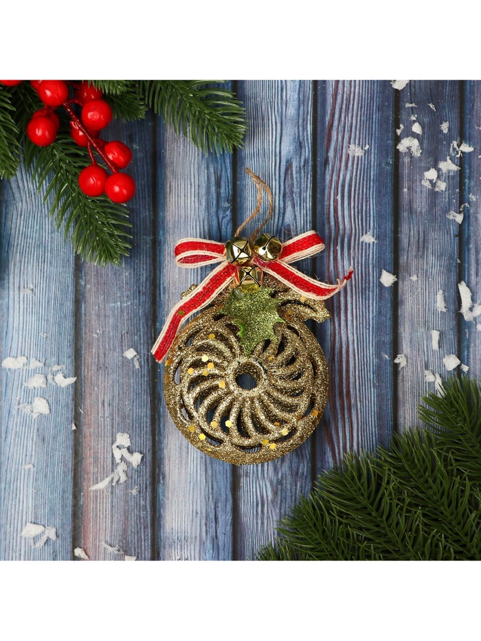 Ёлочная игрушка «Шар ажурный» 8×10 см, золото