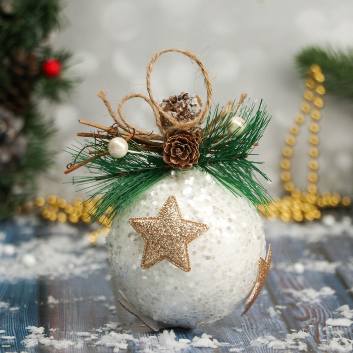 Этот шар привносит в новогодний декор спокойствие и свет, отражая окружающее освещение и усиливая ощущение уюта. Он гармонично впишется в современные и традиционные композиции, помогая создать стильное и тёплое оформление праздника.