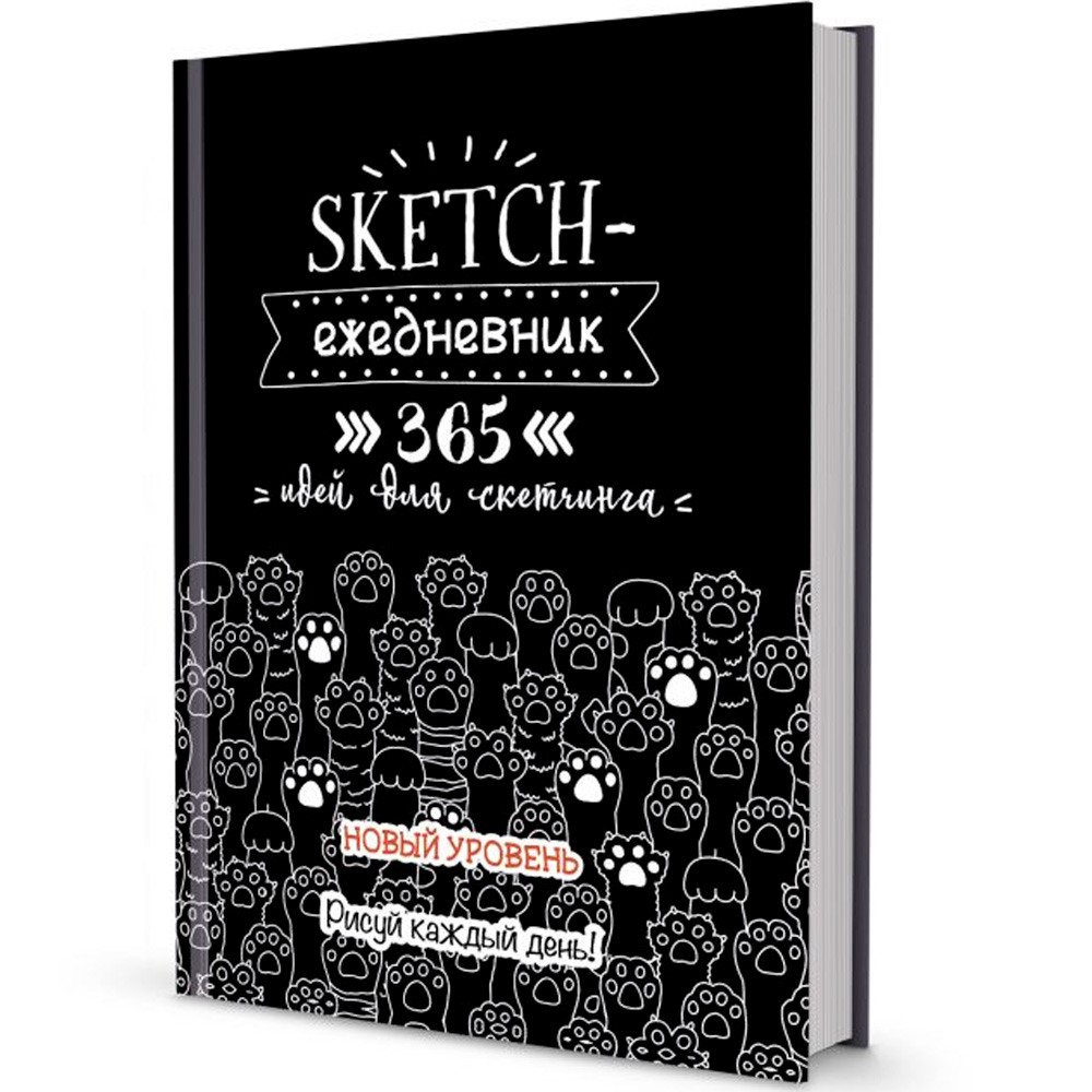 Ежедневник 80 л. 365 идей для скетчинга НОВЫЙ УРОВЕНЬ черная, кошачьи лапки 9785001413066