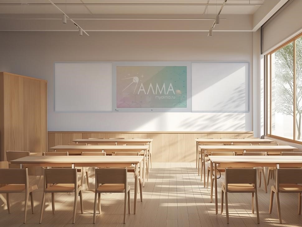 Современная школьная доска, объединяющая инновационные технологии и традиционные инструменты преподавания. В центре интерактивная сенсорная панель с multi-touch (до 10 одновременных касаний), по бокам - пишущая магнитно-маркерная поверхность. Подходит для оснащения школ, учреждений культуры, детских кружков, развивающих и коррекционных центров для детей.