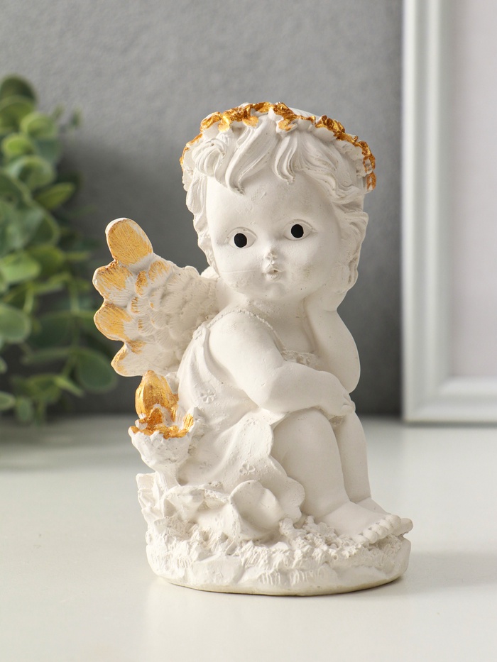 Фигура "Ангел в цветах", размер 13х8 см, цвет белый с росписью
