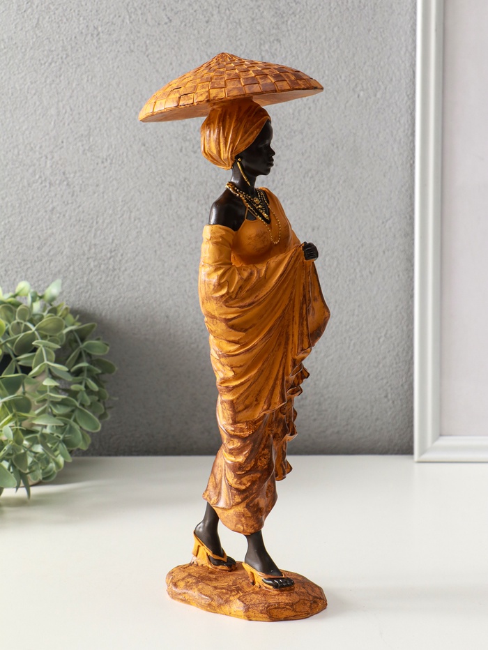 Фигура полистоун «Африканка в горчичном наряде, в шляпе», 11.5×11.5×33.5 см