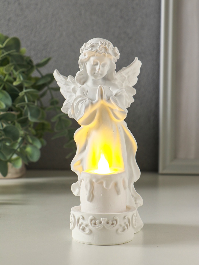 Фигурка светящаяся полистоун «Белоснежная девушка-ангел с тортом», 7.6×8.5×16.3 см