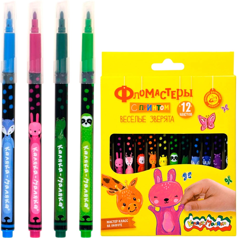 Фломастеры 12 цв. Каляка-маляка Веселые зверята ФНССКМ12