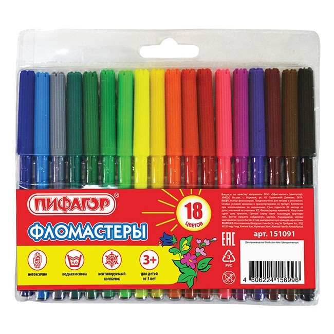 Производитель предлагает широкий ассортимент качественной канцелярии для дома и офиса по приемлемым ценам. Классический набор цветных фломастеров предназначен для рисования и раскрашивания по бумаге и картону. Плотный колпачок надежно предотвращает высыхание. Цвет колпачка и корпуса фломастера соответствуют цвету чернил. Колпачок вентилируемый - при случайном попадании в гортань будет пропускать воздух. Фломастеры морозостойкие. Чернила на водной основе легко отмываются от рук и поверхности стола, не протекают через лист бумаги.