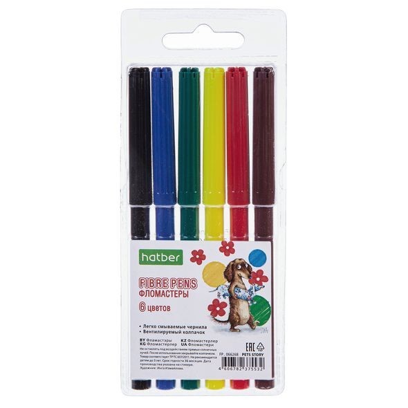 Фломастеры 6 цв. ECO Pets story FP_066268 Hatber