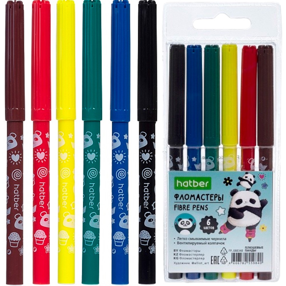 Фломастеры 6 цв. Плюшевые панды FP_088348 Hatber